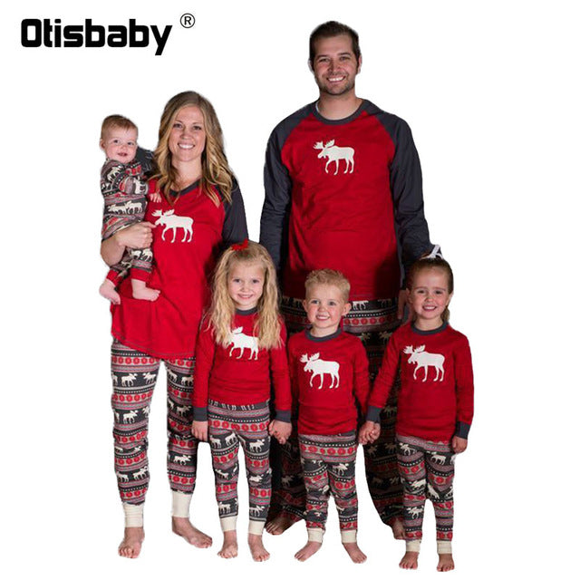 Boutique Father Mother Kids Baby Pajamas Christmas Long Sleeve Sleepwear Matching Family Outfits Cotton Red Pajama for Family